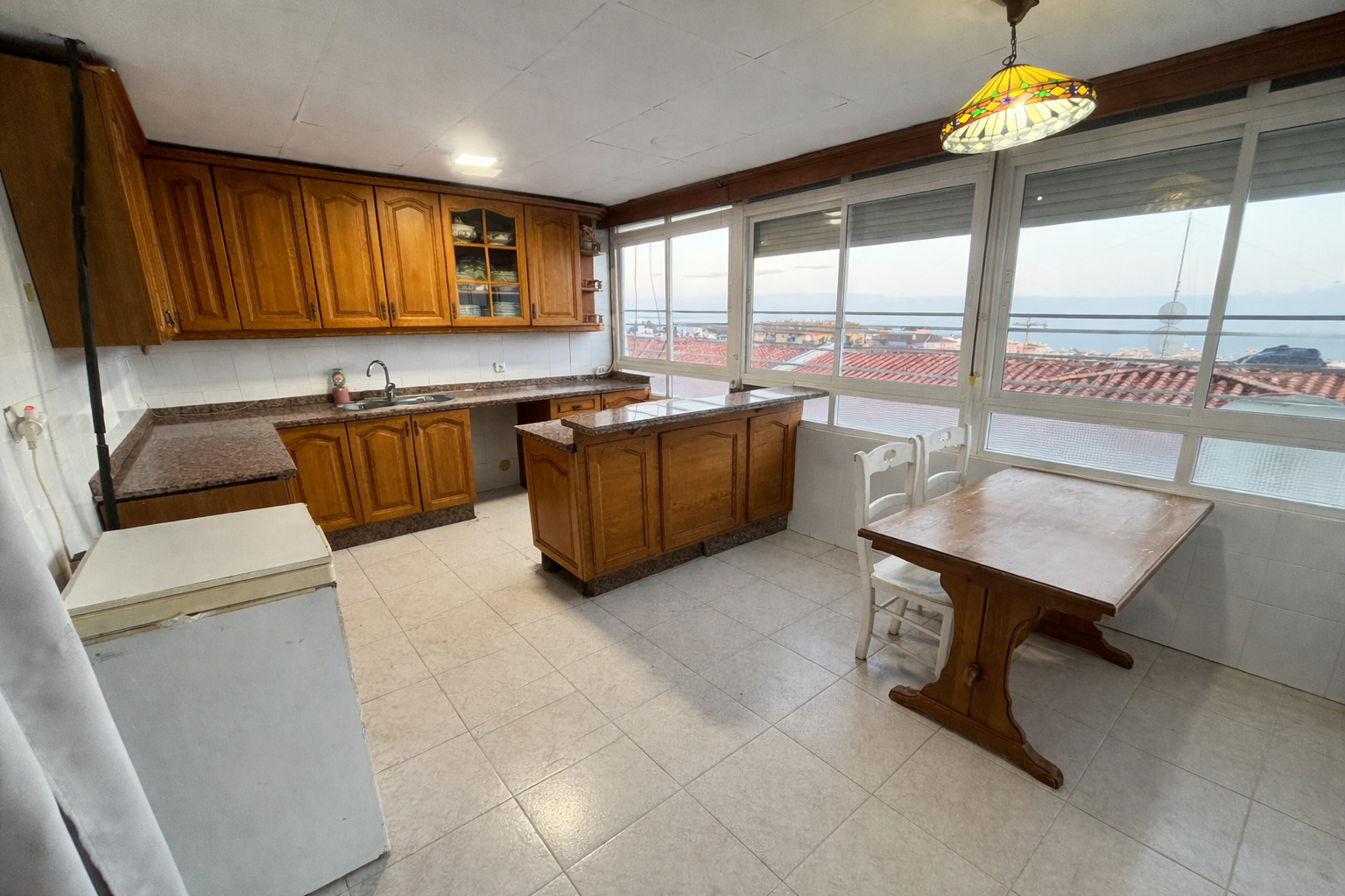 Cuenta con hall de entrada, salón comedor muy amplio y luminoso, estancia convertida en cuarto de juegos, cocina-comedor independiente con acceso a una gran terraza con vistas parciales a mar, 3 dormitorios dobles y 1 cuarto de baño completo. Se encuentra en una segunda planta sin ascensor. Algunas imágenes están modificadas con IA.